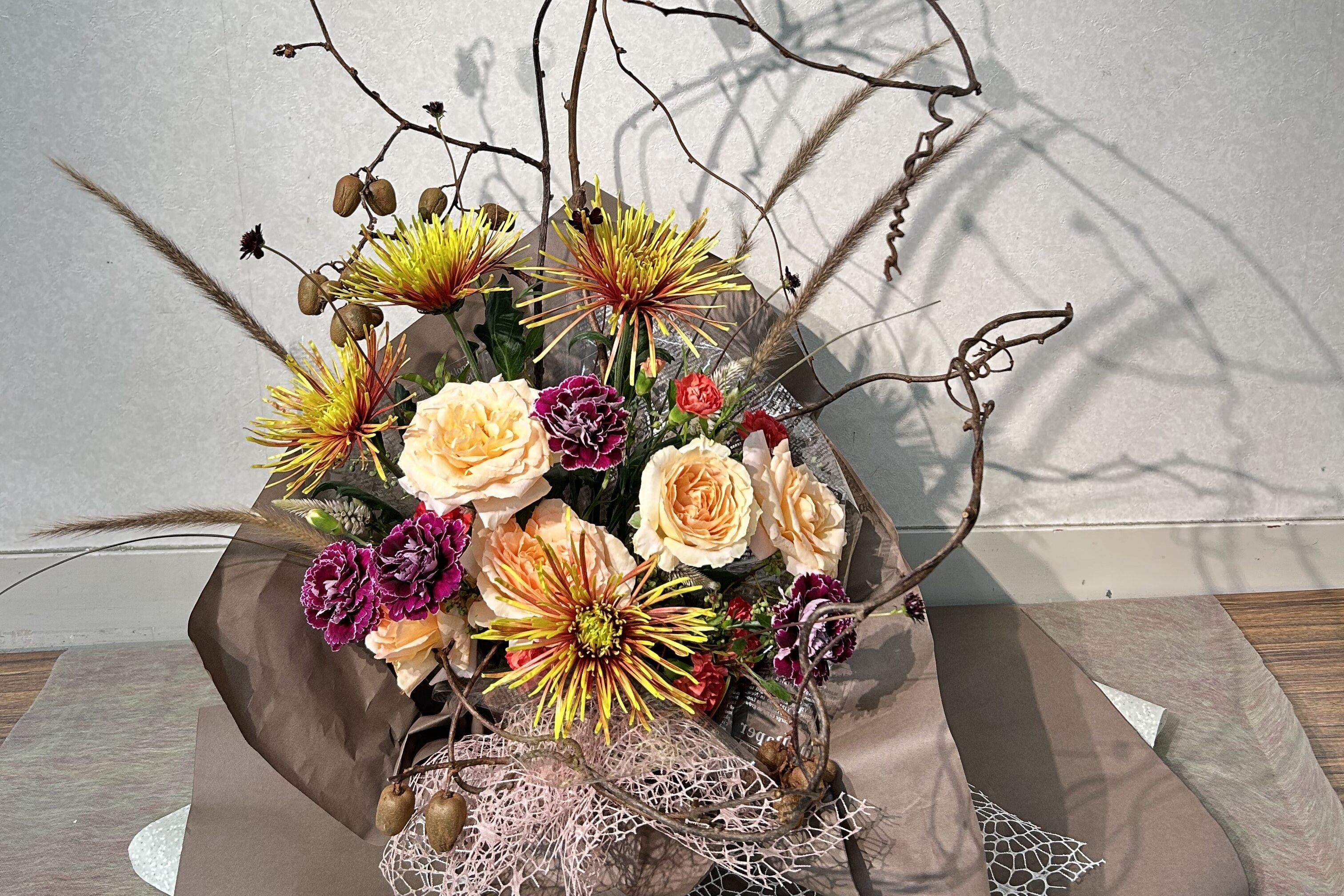 販売向けに仕上げたアレンジメント作品をご購入いただけます。また、結婚式のブーケをはじめ各種お祝い・お悔やみのお花など様々なシーンに合わせたアレンジメントの受注販売にも対応しています。ご希望のイメージをお伺いしてお作りしますので、ご興味のある方は一度お問い合わせください。