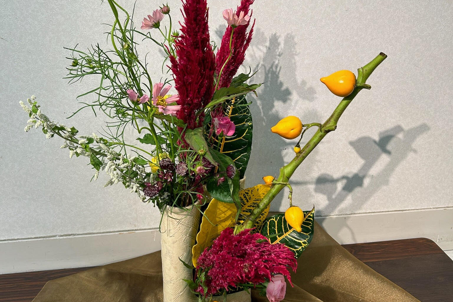 ・花や素材を使って自由に表現するフラワーデザインを指導している