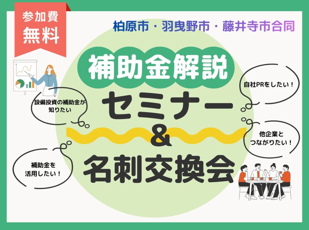 HOMEニュース【3/19開催】柏原市・羽曳野市・藤井寺市合同 補助金解説セミナー&名刺交換会